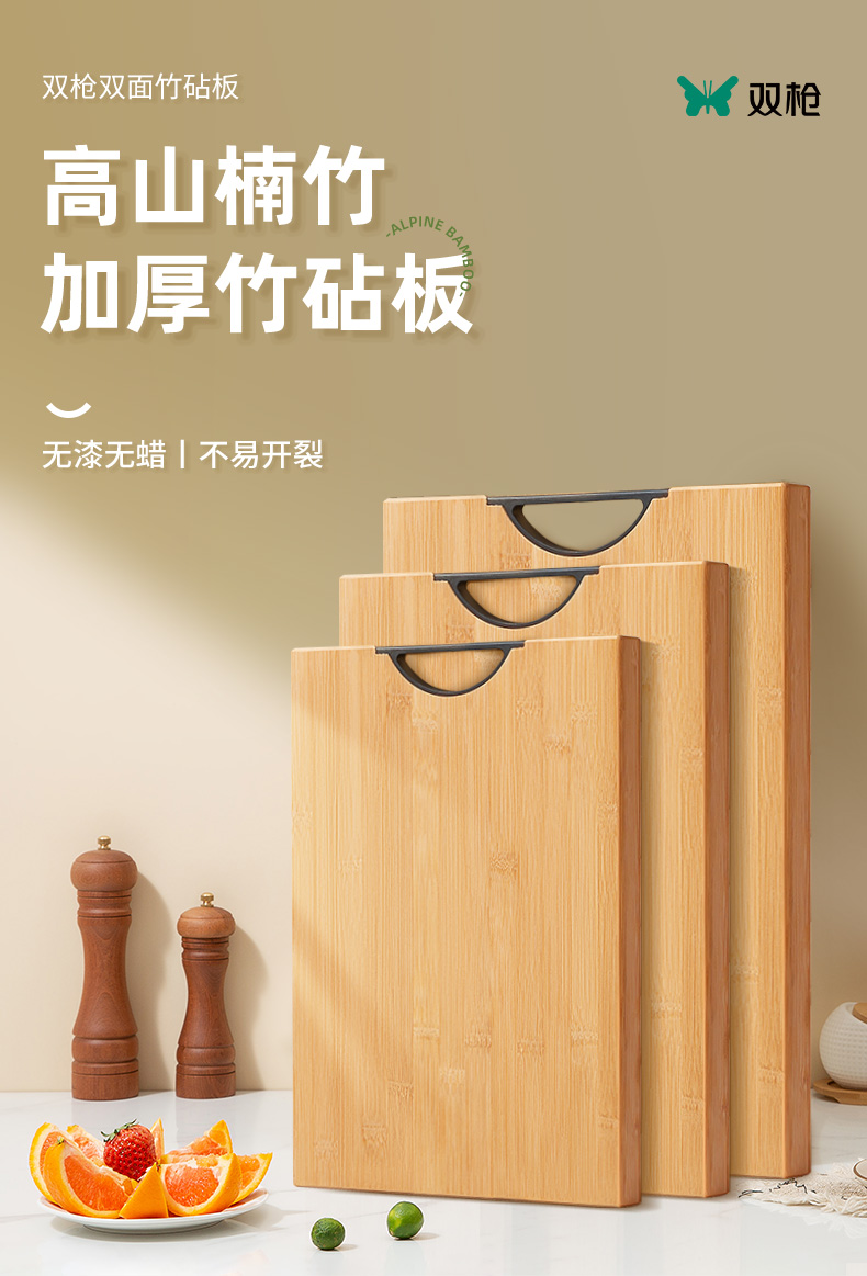 双枪(Suncha)天然竹砧板切菜板实竹案板加大双面可用家用占板38.5*25*1.8cm