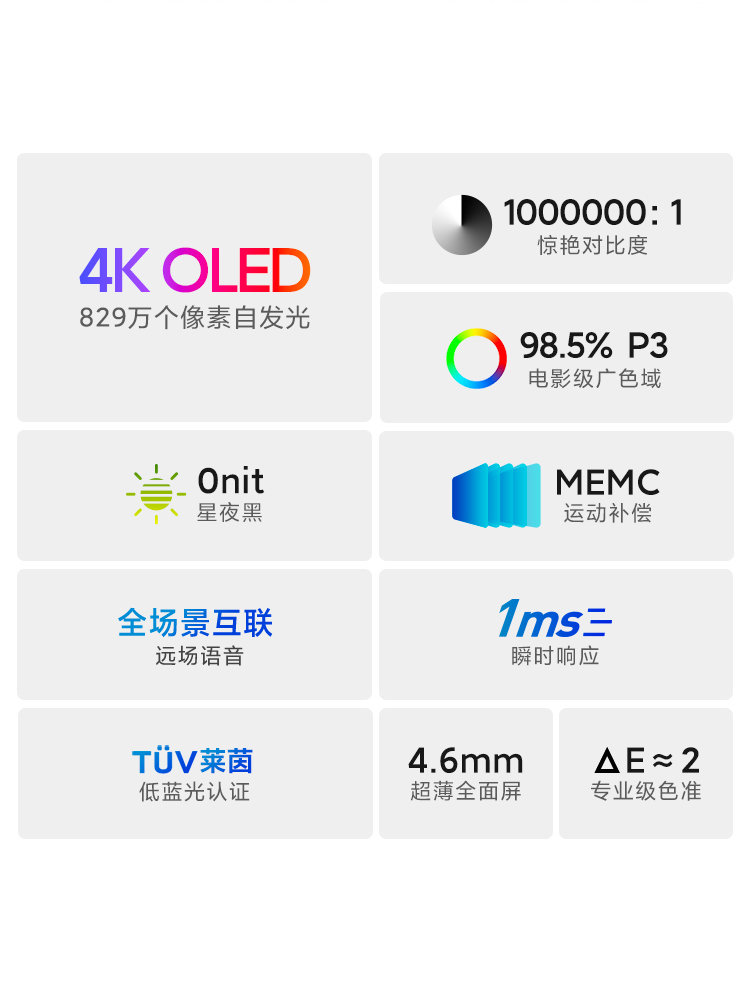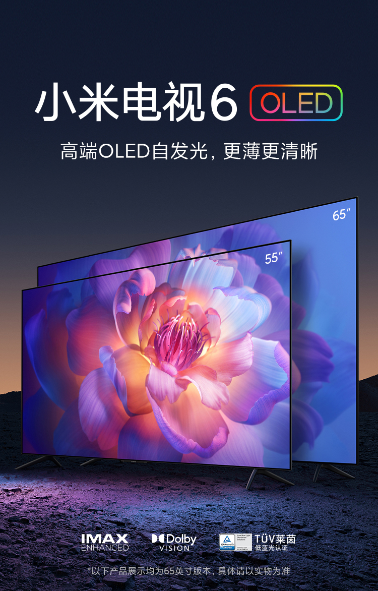 小米电视6 OLED 65英寸 4KHDR 超薄全面屏 MEMC运动补偿 3+32GB 远场语音 护眼教育电视机