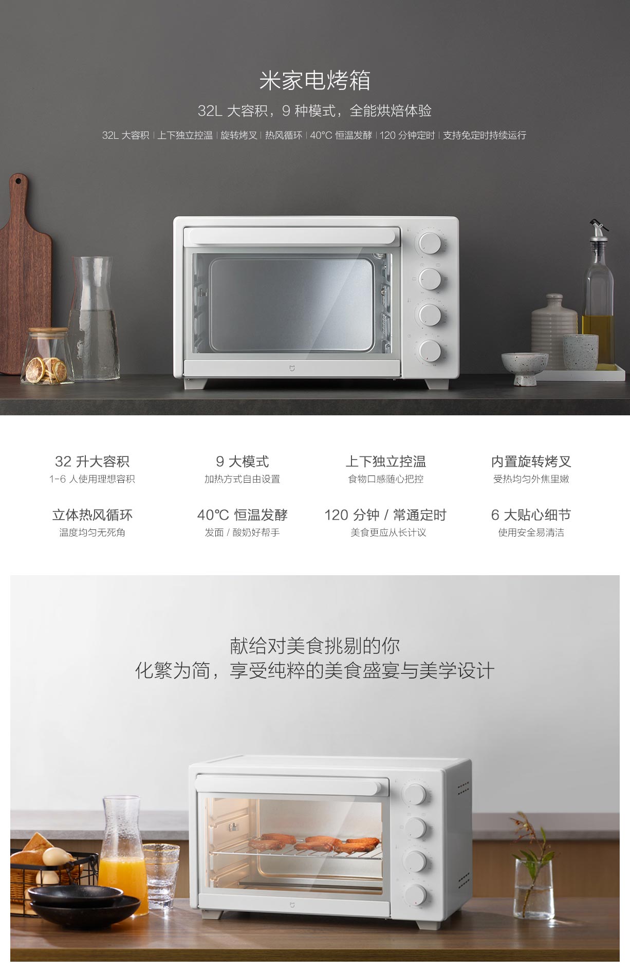 米家 小米电烤箱32L家用 三层烤位 上下独立控温 一机多用 70°C-230°C精准控温 内置烤叉 米家电烤箱